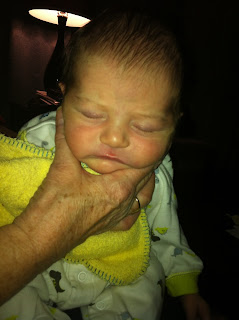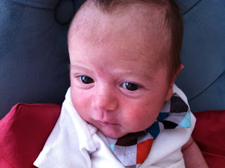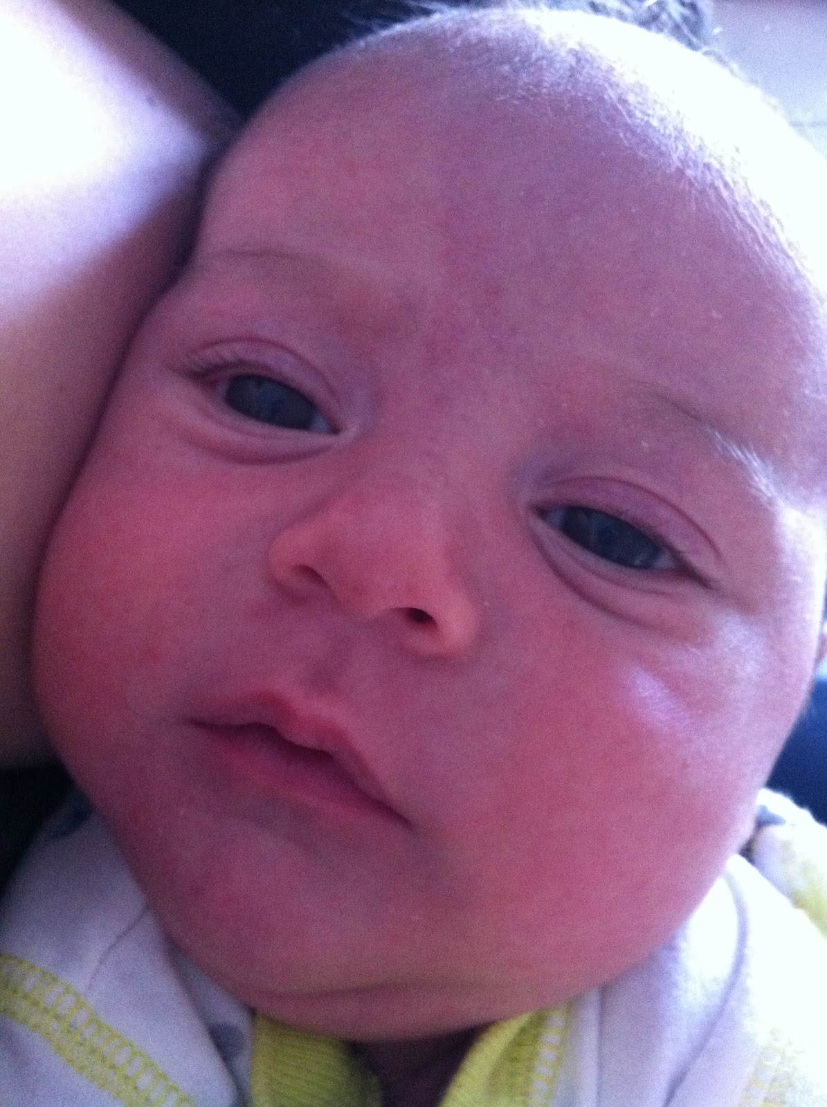 Showing off his new hair line... his birth hair is starting to fall out:-)